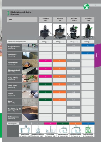 MISCHENMischstationen & Quirle %u00dcbersichtR%u00dcHRQUIRL 1 2 3 4 5 6R%u00fchrpaddelf%u00fcr TwinMix 1800 TR%u00fchrquirl Universalf%u00fcr TwinMix 1800TR%u00fchrpaddelf%u00fcr Automix 1801Spezialr%u00fchrquirl f%u00fcr Automix 1801Spezialr%u00fchrquirl f%u00fcr Automix 90Spezialr%u00fchrquirl f%u00fcr FloorMix 2300TYP Automix 1801Automix 90TwinMix 1800 TFloorMix2300ANWENDUNGSBEREICHE 50 kg (max) 80 kg (max) 50 kg (max) 150 kg (max)AusgleichsmasseR%u00fchrquirl Typ1 / 2 6Flie%u00dfestrichR%u00fchrquirl Typ1 / 2 6FliesenkleberR%u00fchrquirl Typ3 5 1 / 2D%u00fcnnbettm%u00f6rtelR%u00fchrquirl Typ3 5 1 / 2Fertig - M%u00f6rtelR%u00fchrquirl Typ3 5 1 / 2Fertig - PutzR%u00fchrquirl Typ4 5 1 / 2EstrichR%u00fchrquirl Typ4 5 1 / 2BetonR%u00fchrquirl Typ4 5 1 / 2Beschichtung - 2KR%u00fchrquirl Typ1 / 2DichtungsmasseR%u00fchrquirl Typ1 / 273Spezialr%u00fchrquirl 5Spezialr%u00fchrquirl 1R%u00fchrpaddel6R%u00fchrquirl Universal Spezialr%u00fchrquirl