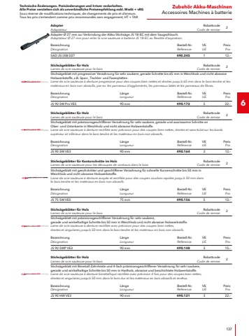 Technische %u00c4nderungen. Preis%u00e4nderungen und Irrtum vorbehalten.Alle Preise verstehen sich als unverbindliche Preisempfehlung exkl. MwSt + vRGSous r%u00e9serve de modifications techniques, de changements de prix et d%u2019erreurs. Tous les prix s%u2018entendent comme prix recommand%u00e9s sans engagement, HT + TAR414Zubeh%u00f6r Metalloberfl%u00e4chen-BearbeitungAccessoires Traitement de surface m%u00e9talliqueSchleifband MESHFLEXBande abrasive MESHFLEXRabattcodeCode de remise2Zum Entfernen von leichten Besch%u00e4digungen, Kratzern, Anlauffarben, Flugrost, Zunder und Schmutz. Anlauffarben an Schweissn%u00e4hten lassen sich bei d%u00fcnnen Blechen ohne W%u00e4rmeverzug entfernen.Geeignet f%u00fcr Schleif-, Reinigungs- und Finishingarbeiten an Edelstahlstahl, Stahl, Titanlegierungen, Leichtmetallen, Buntmetallen und Kunststoffen.Elimination des petits dommages et des rayures l%u00e9g%u00e8res. Elimination des couleurs de rendu, des couches minces de rouille, des m%u00e2chefers et des salet%u00e9s. Elimination des couleurs de rendu sur les cordons de soudure pour les t%u00f4les minces sans d%u00e9formation sous l%u2019effet de la chaleur. Pour les travaux de pon%u00e7age, nettoyage et finition sur l%u2019acier inoxydable, l%u2019acier, les alliages de titane, les m%u00e9taux l%u00e9gers, les m%u00e9taux non ferreux et les plastiques.BezeichnungD%u00e9signationBandl%u00e4ngeLongueur de bandeBandbreiteLargeur de bandeKornGrainBestell-Nr.R%u00e9f%u00e9renceVEUEPreis Prix533x9 ME-A240 VE3533 mm9 mmA 240318.663328.%u2013533x9 ME-A400 VE3533 mm9 mmA 400318.671328.%u2013533x30 ME-A100 VE3533 mm30 mmA 100434.868346.%u2013533x30 ME-A240 VE3533 mm30 mmA 240318.647338.%u2013533x30 ME-A400 VE3533 mm30 mmA 400318.655338.%u2013Zubeh%u00f6r / Accessoires LBR 1506 VRASchleifband ZIRCOFLEXBande abrasive ZIRCOFLEXRabattcodeCode de remise9Schleifband mit hochwertigem, selbstsch%u00e4rfendem Zirkonkorund f%u00fcr verl%u00e4ngerte Standzeit. Hohe Abtragsleistung beim Grob- und Zwischenschliff von Stahl- und Edelstahloberfl%u00e4chen.Bande abrasive avec corindon de zirconium de haute qualit%u00e9 %u00e0 auto-aff%u00fbtage pour une plus longue dur%u00e9e de vie. Capacit%u00e9 abrasive %u00e9lev%u00e9e lors du pon%u00e7age grossier et interm%u00e9diaire des surfaces en acier et acier inoxydable.BezeichnungD%u00e9signationBandl%u00e4ngeLongueur de bandeBandbreiteLargeur de bandeKornGrainBestell-Nr.R%u00e9f%u00e9renceVEUEPreis Prix618x40 ZI-P36 VE10618 mm40 mmP 36223.6701042.%u2013618x40 ZI-P60 VE10618 mm40 mmP 60223.6891039.%u2013618x40 ZI-P80 VE10618 mm40 mmP 80434.8761038.%u2013618x40 ZI-P120 VE10618 mm40 mmP 120266.1321038.%u2013Schleifband CORUFLEXBande abrasive CORUFLEXRabattcodeCode de remise9Hochflexibles Schleifband mit verg%u00fctetem Korundkorn und schleifaktiven Wirkstoffen f%u00fcr die Edelstahlbearbeitung. Besonders geeignet f%u00fcr den Feinschliff.Bande abrasive ultra souple avec grain corindon tremp%u00e9 et agents abrasifs actifs pour le traitement de l%u2019acier inoxydable. Particuli%u00e8rement adapt%u00e9 au pon%u00e7age de finition.BezeichnungD%u00e9signationBandl%u00e4ngeLongueur de bandeBandbreiteLargeur de bandeKornGrainBestell-Nr.R%u00e9f%u00e9renceVEUEPreis Prix618x40 CR-P180 VE10618 mm40 mmP 180434.8841038.%u2013618x40 CR-P240 VE10618 mm40 mmP 240434.8921038.%u2013Schleifband MESHFLEXBande abrasive MESHFLEXRabattcodeCode de remise2Zum Entfernen von leichten Besch%u00e4digungen, Kratzern, Anlauffarben, Flugrost, Zunder und Schmutz. Anlauffarben an Schweissn%u00e4hten lassen sich bei d%u00fcnnen Blechen ohne W%u00e4rmeverzug entfernen.Geeignet f%u00fcr Schleif-, Reinigungs- und Finishingarbeiten an Edelstahlstahl, Stahl, Titanlegierungen, Leichtmetallen, Buntmetallen und Kunststoffen.Elimination des petits dommages et des rayures l%u00e9g%u00e8res. Elimination des couleurs de rendu, des couches minces de rouille, des m%u00e2chefers et des salet%u00e9s. Elimination des couleurs de rendu sur les cordons de soudure pour les t%u00f4les minces sans d%u00e9formation sous l%u2019effet de la chaleur. Pour les travaux de pon%u00e7age, nettoyage et finition sur l%u2019acier inoxydable, l%u2019acier, les alliages de titane, les m%u00e9taux l%u00e9gers, les m%u00e9taux non ferreux et les plastiques.BezeichnungD%u00e9signationBandl%u00e4ngeLongueur de bandeBandbreiteLargeur de bandeKornGrainBestell-Nr.R%u00e9f%u00e9renceVEUEPreis Prix618x40 ME-A100 VE3618 mm40 mmA 100317.969360.%u2013618x40 ME-A240 VE3618 mm40 mmA 240317.977352.%u2013618x40 ME-A400 VE3618 mm40 mmA 400317.985352.%u2013