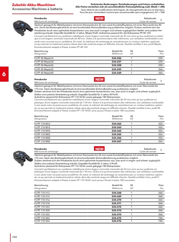Technische %u00c4nderungen. Preis%u00e4nderungen und Irrtum vorbehalten.Alle Preise verstehen sich als unverbindliche Preisempfehlung exkl. MwSt + vRGSous r%u00e9serve de modifications techniques, de changements de prix et d%u2019erreurs. Tous les prix s%u2018entendent comme prix recommand%u00e9s sans engagement, HT + TAR546Akku-MaschinenMachines %u00e0 batterieTechnische DatenAkku-Spannung12VAkku-Kapazit%u00e4t2.5 / 5.0 AhLeerlaufhubzahl800 %u2013 3%u2018000 1/minHub23 mmPedelhubstufen4 StufenDrehzahlstufen1-5 +A StufenSchwenkbereich0-45%u00b0Max. Materialst%u00e4rke Holz90 mmMax. Materialst%u00e4rke Metall10 mmAbmessung LxBxH220 x 69 x 183 mmGewicht ohne Akkupack1.46 kgCaract%u00e9ristiques techniquesTension de batterie12VCapacit%u00e9 de batterie2.5 / 5.0 AhVitesse de cycle %u00e0 vide800 %u2013 3%u2018000 tr/minCourse23 mmNiveaux de mouvement pendulaire4 niveauxNiveaux de vitesse1-5 +A nixeauxPlage de pivotement0-45%u00b0%u00c9paisseur de mat%u00e9riau max. bois90 mm%u00c9paisseur de mat%u00e9riau max. m%u00e9tal10 mmDimension LxlxH220x69x183mmPoids sans batterie1.46 kgJSP 12-ECBestell-Nr.R%u00e9f%u00e9renceGTINRabattcodeCode de remisePreisPrixAkku-Stichs%u00e4ge 12V Scie sauteuse %u00e0 batterie 12V531.31740302932515711240.%u2013 exkl. MwSt. hors TVA 0.56 vRGTARNEWLieferumfang1x Spanflugschutz geschlossen1x Spannreissschutz490.2291x Saugadapter %u00d8 271x Innensechskantschl%u00fcssel, SW 31x Gleitschuh1x Koffereinlage533.1661x Transportkoffer L-BOXX%u00ae414.085Equipement de base1x protection contre la projection de copeaux ferm%u00e9e1x protection contre les %u00e9clats490.2291x adaptateur d%u2018aspiraton %u00d8 271x cl%u00e9 allen, SW 31x patin coulissant1x insert pour coffret533.1661x coffret de transport L-BOXX%u00ae414.085Technische DatenAkku-Spannung12VAkku-Kapazit%u00e4t2.5 / 5.0 AhLeerlaufhubzahl0 %u2013 3%u2018000 1/minHub16 mmMax. Materialst%u00e4rke Holz90 mmMax. Materialst%u00e4rke Metall60 mmAbmessung LxBxH330 x 75 x 138 mmGewicht ohne Akkupack1.5 kgCaract%u00e9ristiques techniquesTension de batterie12VCapacit%u00e9 de batterie2.5 / 5.0 AhVitesse de cycle %u00e0 vide0 %u2013 3%u2018000 tr/minCourse16 mm%u00c9paisseur de mat%u00e9riau max. bois90 mm%u00c9paisseur de mat%u00e9riau max. m%u00e9tal60 mmDimension LxlxH330x75x138mmPoids sans batterie1.5 kgRS 16 12-EC CBestell-Nr.R%u00e9f%u00e9renceGTINRabattcodeCode de remisePreisPrixLeistungsstarke Akku-S%u00e4bels%u00e4ge 12V Puissante scie sabre %u00e0 batterie 12V531.31440302932515401190.%u2013 exkl. MwSt. hors TVA 0.56 vRGTARNEWTechnische DatenAkku-Spannung12VAkku-Kapazit%u00e4t2.5 / 5.0 AhLeerlaufhubzahl0 %u2013 3%u2018000 1/minHub16 mmMax. Materialst%u00e4rke Holz90 mmMax. Materialst%u00e4rke Metall60 mmAbmessung LxBxH330 x 75 x 138 mmGewicht ohne Akkupack1.5 kgCaract%u00e9ristiques techniquesTension de batterie12VCapacit%u00e9 de batterie2.5 / 5.0 AhVitesse de cycle %u00e0 vide0 %u2013 3%u2018000 tr/minCourse16 mm%u00c9paisseur de mat%u00e9riau max. bois90 mm%u00c9paisseur de mat%u00e9riau max. m%u00e9tal60 mmDimension LxlxH330x75x138mmPoids sans batterie1.5 kgRS 16 12-ECBestell-Nr.R%u00e9f%u00e9renceGTINRabattcodeCode de remisePreisPrixLeistungsstarke Akku-S%u00e4bels%u00e4ge 12V Puissante scie sabre %u00e0 batterie 12V531.31540302932515571240.%u2013 exkl. MwSt. hors TVA 0.56 vRGTARNEWLieferumfang1x Koffereinlage533.1681x Transportkoffer L-BOXX%u00ae414.085Equipement de base1x insert pour coffret533.1681x coffret de transport L-BOXX%u00ae414.085Das passende Zubeh%u00f6r finden Sie ab der Seite 46.Vous trouverez les accessoires correspondants %u00e0 partir de la page 46.Das passende Zubeh%u00f6r finden Sie ab der Seite 46.Vous trouverez les accessoires correspondants %u00e0 partir de la page 46.