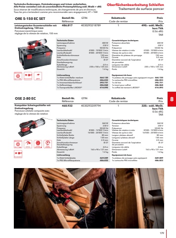 Technische %u00c4nderungen. Preis%u00e4nderungen und Irrtum vorbehalten.Alle Preise verstehen sich als unverbindliche Preisempfehlung exkl. MwSt + vRGSous r%u00e9serve de modifications techniques, de changements de prix et d%u2019erreurs. Tous les prix s%u2018entendent comme prix recommand%u00e9s sans engagement, HT + TAR152WinkelschleiferMeuleses d%u2018angleTechnische DatenLeistungsaufnahme2600 WLeistungsabgabe1800 WSpannung230 VFrequenz50/60 HzMax. Scheibendurchmesser230 mmLeerlaufdrehzahl6%u2018500 1/minSchnitttiefe60 mmWerkzeugaufnahmeM14Kabell%u00e4nge4.0 mAbmessung LxBxH610 x 195 x 290 mmGewicht9.18 kgLieferumfang1x Trenn-Absaughaube f%u00fcr grosseWinkelschleifer 230 mm471.8951x Diamantjet %u2013 DiamanttrennscheibeUniversal500.7203x Gummileiste494.5931x Distanzring494.6151x SoftVib-Handgriff325.3841x Spannmutter M14100.0801x Innensechskantschl%u00fcssel, SW 6104.1671x Stirnlochschl%u00fcssel, BL 5100.1101x Spannflansch335.2821x Transportkoffer499.579Caract%u00e9ristiques techniquesPuissance absorb%u00e9e2600 WPuissance utile1800 WTension230 VFr%u00e9quence50/60 HzDiam%u00e8tre de disque max.230 mmVitesse de rotation %u00e0 vide6%u2018500 tr/minProfondeur de coupe60 mmEmmanchementM14Longueur de c%u00e2ble4.0 mDimension LxlxH610 x 195 x 290 mmPoids9.18 kgEquipement de base1x carter de tron%u00e7onnage pour l%u2018aspirationde poussi%u00e8re avec meuleuse 230 mm471.8951x diamantjet %u2013 Disque de tron%u00e7onnagediamant%u00e9 universel500.7203x inserts en caoutchouc494.5931x rondelle d%u2018%u00e9cartement494.6151x poign%u00e9e SoftVib325.3841x ecrou de serrage M14100.0801x cl%u00e9 %u00e0 hex, SW 6104.1671x cl%u00e9 %u00e0 ergots, BL 5100.1101x bride de serrage335.2821x coffret de transport499.579DCG L 26-6 230 SetBestell-Nr.R%u00e9f%u00e9renceGTINRabattcodeCode de remisePreisPrixDiamant-Trennsystem, 230 mmSyst%u00e8me de d%u00e9coupe diamant, 230 mm494.63140302932241481640.%u2013 exkl. MwSt. hors TVA 2.31 vRGTARTechnische DatenLeistungsaufnahme2600 WLeistungsabgabe1800 WSpannung230 VFrequenz50/60 HzMax. Scheibendurchmesser230 mmLeerlaufdrehzahl6%u2018500 1/minSchnitttiefe60 mmWerkzeugaufnahmeM14Kabell%u00e4nge4.0 mAbmessung LxBxH610 x 195 x 290 mmGewicht9.18 kgLieferumfang1x Trenn-Absaughaube f%u00fcr grosseWinkelschleifer 230 mm471.8951x Diamantjet %u2013 DiamanttrennscheibeUniversal500.7201x F%u00fchrungsschiene GRS 80353.2803x Gummileiste494.5931x Distanzring494.6151x SoftVib-Handgriff325.3841x Spannmutter M14100.0801x Innensechskantschl%u00fcssel, SW 6104.1671x Stirnlochschl%u00fcssel, BL 5100.1101x Spannflansch335.2821x Transportkoffer499.579Caract%u00e9ristiques techniquesPuissance absorb%u00e9e2600 WPuissance utile1800 WTension230 VFr%u00e9quence50/60 HzDiam%u00e8tre de disque max.230 mmVitesse de rotation %u00e0 vide6%u2018500 tr/minProfondeur de coupe60 mmEmmanchementM14Longueur de c%u00e2ble4.0 mDimension LxlxH610 x 195 x 290 mmPoids9.18 kgEquipement de base1x carter de tron%u00e7onnage pour l%u2018aspirationde poussi%u00e8re avec meuleuse 230 mm471.8951x diamantjet %u2013 Disque de tron%u00e7onnagediamant%u00e9 universel500.7201x rail de guidage GRS 80353.2803x inserts en caoutchouc494.5931x rondelle d%u2018%u00e9cartement494.6151x poign%u00e9e SoftVib325.3841x ecrou de serrage M14100.0801x cl%u00e9 %u00e0 hex, SW 6104.1671x cl%u00e9 %u00e0 ergots, BL 5100.1101x bride de serrage335.2821x coffret de transport499.579DCG L 26-6 230 G-SetBestell-Nr.R%u00e9f%u00e9renceGTINRabattcodeCode de remisePreisPrixDiamant-Trennsystem, 230 mmSyst%u00e8me de d%u00e9coupe diamant, 230 mm494.67440302932241551720.%u2013 exkl. MwSt. hors TVA 2.31 vRGTAR