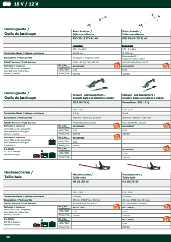 Hammerbohren und Meisseln / Per%u00e7age %u00e0 percussion et burinageBohrhammer / MarteauxKombihammer / Marteau combin%u00e9Kombihammer / Marteau combin%u00e9BH 18 LTX BL 16KH 18 LTX 24KH 18 LTX BL 24LTXLTXLTXQuick / Werkzeugaufnahme / Porte-outilSDS-plusSDS-plusSDS-plusEinzelschlagenergie / %u00c9nergie de frappe par coup1,3 J2,1 J2,2 JOptimaler Bohr-%u00d8 Beton / %u00d8 optimal de forage du b%u00e9ton5'250 /min, L-Shape form5'200 /min, L-Shape form4'750 /min, L-Shape formSMART Service / FULL ServiceH02=135.00/FS3=159.00H02=135.00/FS3=159.00H02=135.00/FS3=159.00Karkasse / carcasseohne Akku und Ladeger%u00e4t / sans batterie et chargeur, Karton / cartonNr. / No the swiss edition600324850601712850601713850vRG/TAR0.610.610.61Preis/Prix249.00235.00335.00Karkasse / carcasseohne Akku und Ladeger%u00e4t / sans batterie et chargeur& metaBOXNr. / No the swiss edition600324840601712840601713840vRG/TAR0.610.610.61Preis/Prix269.00249.00349.00Karkasse / carcasseohne Akku und Ladeger%u00e4t / sans batterie et chargeur& metaBOX + ISANr. / No the swiss editionvRG/TARPreis/Prix2 x 5.2 Ah ASC 55 & metaBOXNr. / No the swiss edition601712510vRG/TAR2.33Preis/Prix419.002 x 4.0 Ah LiHD ASC 55 & metaBOXNr. / No the swiss edition601713800vRG/TAR2.33Preis/Prix519.002 x 5.5 Ah LiHD ASC 145 & metaBOXNr. / No the swiss edition601713660vRG/TAR5.96Preis/Prix629.002x2x2xStaubabsaugung / Aspiration de la poussi%u00e8reEinzelschlagenergie / %u00c9nergie de frappe par coupOptimaler Bohr-%u00d8 Beton / %u00d8 optimal de forage du b%u00e9tonSMART Service / FULL ServiceKarkasse / carcasseohne Akku und Ladeger%u00e4t / sans batterie et chargeur, Karton / cartonNr. / No the swiss editionvRG/TARPreis/Prix2018 V