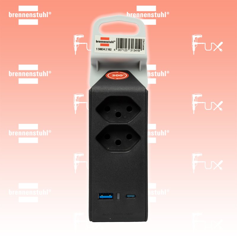 Brennenstuhl cleverLINE Abzweigstecker 2-fach schwarz mit USB Typ-A und Typ-C
