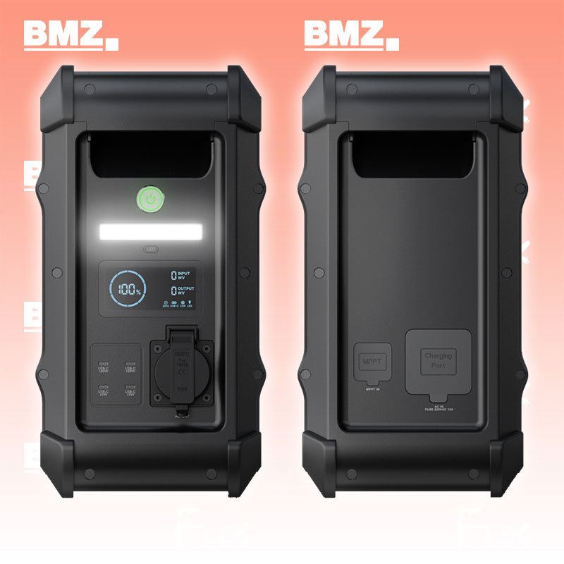 Zu "Mobiler Speicher" von BMZ Innovation Group BMZ Innovation Group POWER2GO LIFE Bestell- und Artikelnummer: 627104 Der zuverlässige Begleiter für Energie unterwegs Wenn du dich auf Outdoor-Abenteuer begibst oder beim Camping die Freiheit der Natur genießt, ist der BMZ POWER2GO dein ultimativer Partner für unabhängige Energieversorgung. Das robuste und widerstandsfähige Design, das staub- und wasserdicht gestaltet ist, macht den POWER2GO zu einem verlässlichen Begleiter in jeder Situation. Wo auch immer dein Weg dich hinführt, der POWER2GO LIFE besticht durch hohe Mobilität. Mit einem Gewicht von ~ 25 kg in einer kompakten Bauweise mit ergonomischen Handgriffen kann sie überallhin mitgenommen werden. Doch lass dich nicht von seiner Größe täuschen, denn der POWER2GO bietet eine beeindruckende Leistungsdichte, die dich nie im Stich lassen wird. Mit einer Spitzenleistung von 3.600 W und einem konstanten, langfristigen Power Output von 2.500 W ermöglicht er dir den Betrieb von Geräten mit hoher Leistungsanforderung. Ob du elektronische Gadgets, Beleuchtungssysteme oder sogar Küchengeräte betreiben möchtest, der POWER2GO liefert zuverlässig die Energie, die du brauchst. Das Aluminiumgehäuse des POWER2GO ist nicht nur robust, sondern auch IP65-zertifiziert, was ihn vor Staub und Wasser schützt. Das integrierte Display, die Beleuchtung und die LED-Anzeige für die laufende Nutzung machen die Verwendung des POWER2GO äußerst benutzerfreundlich und intuitiv. Und das Beste daran? Du kannst den POWER2GO auch durch Solarenergie aufladen! Mit einer Ladekapazität von unter 500W kannst du die Sonnenstrahlen einfangen und deine Energiequelle nachhaltig aufladen. Egal, ob du in der Wildnis unterwegs bist, einen Campingplatz dein Zuhause nennst oder dich auf Abenteuerreisen begibst, der BMZ POWER2GO wird dein zuverlässiger Begleiter sein, der dich mit der Energie versorgt, die du brauchst, wo immer du auch bist. Mach dich bereit für grenzenlose Freiheit und Energie mit dem POWER2GO an deiner Seite! Technische Daten Zelltyp Lithium-Ionen 21700 Nominale Leistung 2.500 W Max. Leistung 3.600 W Ladespannung 92-264 Vac Ladeleistung 1.000 W AC-Ausgang @230Vac 1 x 2.500 W (Schuko-Stecker) AC-Eingang 1 x C14-Stecker DC-Ausgang USB-C PD 4 x 100 W Gewicht 25 kg Zubehör Aktueller Fuxtagespreis auf AnfrageAlle Angaben ohne Gewähr und solange Vorrat reicht! Produkt als PDFProduktevideo NEUHEIT