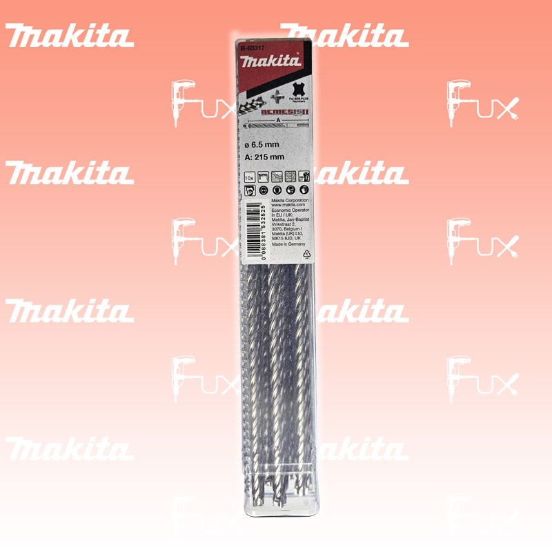 Das Ladenlokal bleibt vom 25. Dezember 2025 bis am 04. Januar 2026 geschlossen. Bestellungen und Lieferungen von Neugeräten werden trotz Ferienabwesenheit in gewohnter Fux-Manier entgegengenommen und ausgeliefert. Zu "SDS Plus NEMESIS II 4-schneidig SET" von Makita Makita NEMESIS II Set Hammerbohrer SDS-PLUS 6.5 mm / 215 mm Bestell- und Artikelnummer: B-63317 NEMESIS II sind 4-schneidige Hammerbohrer mit SDS-PLUS Aufnahme. Eine innovative Verbesserungen des Kopfdesigns mit durchgehender Karbidspitze machen die Nemesis II Hammerbohrer schneller und sorgen für eine längere Standzeit. Die bewährte NEMESIS II Bohrerserie wurde mit besonderem Augenmerk auf das Bohren in armiertem Beton entwickelt. Technische Daten Durchmesser 6.5 mm Länge 215 mm Arbeitslänge 150 mm Standard-Ausrüstung 10 Stück in Box Listenpreis CHF 139.00 Fuxpreis CHF 97.00 inkl. 8.1% MwSt, inkl vRG Versand CHF 15.00 Kein Grauimport! Produkt bestellen 1 Stück 2 Stück 3 Stück 4 Stück 5 Stück 6 Stück 7 Stück 8 Stück 9 Stück 10 Stück 11 Stück 12 Stück 13 Stück 14 Stück 15 Stück 16 Stück 17 Stück 18 Stück 19 Stück 20 Stück 21 Stück 22 Stück 23 Stück 24 Stück 25 Stück 26 Stück 27 Stück 28 Stück 29 Stück 30 Stück 31 Stück 32 Stück 33 Stück 34 Stück 35 Stück 36 Stück 37 Stück 38 Stück 39 Stück 40 Stück 41 Stück 42 Stück 43 Stück 44 Stück 45 Stück 46 Stück 47 Stück 48 Stück 49 Stück 50 Stück Alle Angaben ohne Gewähr und solange Vorrat reicht!Wiederverkäufer werden?Lehrlingsrabatt? Produkt als PDF AKTION 30%
