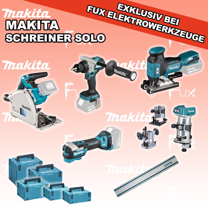 Heute auf dieses Produkt 31% Rabatt! Zu "Schreiner Set" von Makita Sparfux Aktionen FUX SPECIAL EXKLUSIV BEI FUX Makita Schreiner Set 1 SOLO Bestell- und Artikelnummer: maSchreiner Set 1 SOLO DSP600ZJ Eintauch-KreissägeAkkuspannung 2 x 18 V Sägeblatt (Ø) 165 mm Schnitttiefe bei 90° 56 mm Gewicht 5.1 kg Infos DTM52Z Multifunktions WerkzeugAkkuspannung 18 V Schwingungen 10000 - 20000 min-1 Werkzeugaufnahme Starlock Max System Gewicht inkl. Akku 2.0 kg Infos DJV18ZJ Akku-StichsägeAkkuspannung 18 V Hubzahl 800 - 3500/ min Schnittleistung Holz 135 mm / Stahl 10 mm Gewicht 2.5 kgInfos DRT50ZJX11 Akku-Einhandfräse / Kantenfräse Akkuspannung 18 V Leerlaufdrehzahl 10000 - 30000 min-1 Tiefeneinstellung bis 40 mm Gewicht 2.0 kgInfos DDF492Z Akku-BohrschrauberAkkuspannung 18 V Leerlaufdrehzahl 0 - 550 / 0 - 2100 min⁻¹ Drehmoment hart / weich 130 / 65 Nm Gewicht inkl. Akku 2.3 - 2.6 kgInfos Führungsschiene L = 140 cmgeeignet für SP6000 Handkreissäge mit passenden Adapter Auch für weitere Handkreissägen und Stichsägen geeignet mit passendem Adapter. ( 194579-2 )Infos MAKPAC Gr. 2Produktabmessung (L x B x H) 395 x 295 x 163 mm Infos MAKPAC Gr. 3Produktabmessung (L x B x H) 377 x 277 x 176 mm Infos Einsatz für diverse Akkuschrauber Einsatz für DDF343ZJ, DDF441, DDF446, DDF448, DDF451, DDF453, DDF456R, DDF458, DDF459, DDF480, DDF481, DDF482, DDF484, DDF485, DDF486, DHP441, DHP446, DHP448, DHP451, DHP456, DHP458, DHP459, DHP470, DHP480, DHP481, DHP482, DHP484, DHP485, DHP486, DLX2126TJ1, DLX3092TJInfos Einsatz für DTM52 Einsatz für DTM52 Makpac Koffer Typ C (821551-8) Infos OHNE AKKUS UND LADEGERÄT Standard-Ausrüstung In diesem Set enthalten: DSP600ZJ Eintauch-Kreissäge DTM52Z Multifunktions Werkzeug DJV18ZJ Akku-Stichsäge DRT50ZJX11 Akku-Einhandfräse / Kantenfräse DDF492Z Akku-Bohrschrauber Führungsschiene L = 140 cm MAKPAC Gr. 2 MAKPAC Gr. 3 Einsatz für diverse Akkuschrauber Einsatz für DTM52 Geliefert im Koffer Zubehör Verbrauchsmaterial Listenpreis CHF 2'123.00 Fuxpreis CHF 1'450.00 inkl. 8.1% MwSt, inkl vRG Versand CHF 20.00 Kein Grauimport! Produkt bestellen 1 Stück 2 Stück 3 Stück 4 Stück 5 Stück 6 Stück 7 Stück 8 Stück 9 Stück 10 Stück Option: Makita BL 1860 B ( Li-lon Akku ) für CHF 95.- statt CHF 124.-Infos Alle Angaben ohne Gewähr und solange Vorrat reicht!Wiederverkäufer werden? Produkt als PDF NEUHEITAKTION 31%
