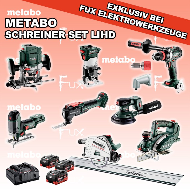 Heute auf dieses Produkt 40% Rabatt! Zu "Schreiner Set" von Metabo FULL Service: 36 Monate zum Nulltarif für Sie! Weitere Infos zum FULL Service Dieses Produkt ist CAS kompatibel! Weitere Infos zu CAS Sparfux Aktionen FUX SPECIAL EXKLUSIV BEI FUX Metabo Schreiner Set XXL 1 LiHD Bestell- und Artikelnummer: Schreiner Set XXL 1 LiHD ST 18 LT 130 BL Akku-StichsägeAkkuspannung 18 V Hubzahl 1000-3.500 /min Gewicht ohne Akkupack 1.5 kgInfos BS 18 LTX BL Q I Akku-BohrschrauberAkkuspannung 18 V Drehzahl 0-550 / 0-2000 U/min Drehmoment hart / weich 130 / 65 Nm Gewicht (mit Akkupack) 2.3 kgInfos FMV 18 LTX BL 8 Akku Kantenfräse Akkuspannung 18 V Leerlaufdrehzahl 4.800 - 29.000 /min Spannbohrung der Spannzange 6 / 8 mmInfos OFV 18 LTX BL 12 Akku-OberfräseAkkuspannung 18 V Leerlaufdrehzahl 11.000 - 25.000 / min Spannbohrung der Spannzange 6 / 8 / 12 mm Gewicht ohne Akkupack 2.900 gInfos KT 18 LTX 66 BL Akku TauchkreissägeAkkuspannung 18 V Schnitt-Tiefe bei 90° 0-66 mm Sägeblatt 165 mm Gewicht 5.3 kgInfos HO 18 LTX 20-82 Akku-Einhand-HobelAkkuspannung 18 V Hobelbreite 82 mm Spanabnahme einstellbar 0-2 mm Gewicht 3.5 KgInfos MT 18 LTX BL QSL Akku-Multitool Akkuspannung 18 V Schwingzahl bei Leerlauf 8.000 - 20.000 /min Schleifplatte, Maß Eck zu Eck 93 mm Gewicht 1.7 kgInfos SXA 18 LTX 150 BL Exzenterschleifer Akkuspannung 18 V Durchmesser des Stütztellers 150 mm Leerlaufdrehzahl 4000 - 10000 /min Gewicht (mit Akkupack) 1.7 kg Infos FS 160 FührungsschieneGesamtlänge 1600 mmInfos 3 x 18 V, 5.5 Ah, LiHD Akkupack18 V 5.5 Ah ( LiHD Akkus ) Infos ASC 145, 12 - 36 V "Air Cooled" LadegerätZum Aufladen aller Li-Power Schiebesitz-Akkupacks (12 V - 36 V). Ladestrom 8.0 AInfos Schnellwechselbithalter »Quick«Schnellwechselbithalter »Quick« Geeignet für alle Metabo "Quick" Maschinen Bits mit 1/4 "Außensechskantantrieb Infos Schnellwechselwinkeladapter »Quick«Metabo "Quick" Maschinen mit Spannzange Ø 43 mm Magnetischer Bithalter mit 1/4 "(6,35 mm) SechskantschaftInfos Registriere die in diesem Set vorhandenen Metabo Maschinen auf metabo.ch, und ergattere dir bis zu 5 Gratis Akkus!Zusätzlich offerieren wir zu diesem Set einen Gratis Akku! Standard-Ausrüstung In diesem Set enthalten: ST 18 LT 130 BL Akku-Stichsäge BS 18 LTX BL Q I Akku-Bohrschrauber FMV 18 LTX BL 8 Akku Kantenfräse OFV 18 LTX BL 12 Akku-Oberfräse KT 18 LTX 66 BL Akku Tauchkreissäge HO 18 LTX 20-82 Akku-Einhand-Hobel MT 18 LTX BL QSL Akku-Multitool SXA 18 LTX 150 BL Exzenterschleifer FS 160 Führungsschiene 3 x 18 V, 5.5 Ah, LiHD Akkupack ASC 145, 12 - 36 V "Air Cooled" Ladegerät Schnellwechselbithalter »Quick« Schnellwechselwinkeladapter »Quick« Zubehör Verbrauchsmaterial Listenpreis CHF 3'628.50 Fuxpreis CHF 2'177.00 inkl. 8.1% MwSt, inkl vRG Versand CHF 40.00 Kein Grauimport! Produkt bestellen 1 Stück 2 Stück 3 Stück 4 Stück 5 Stück 6 Stück 7 Stück 8 Stück 9 Stück 10 Stück Alle Angaben ohne Gewähr und solange Vorrat reicht!Wiederverkäufer werden? Produkt als PDFVideo LiHD 1Video LiHD 2 AKTION 40%