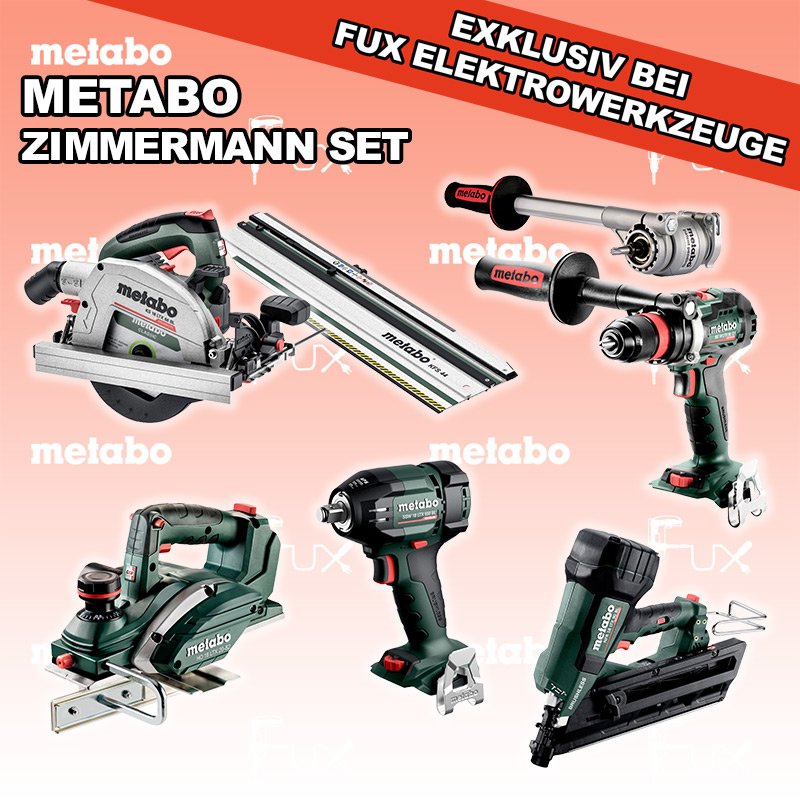 Heute auf dieses Produkt 27% Rabatt! Zu "Zimmermann Set" von Metabo FULL Service: 36 Monate zum Nulltarif für Sie! Weitere Infos zum FULL Service Dieses Produkt ist CAS kompatibel! Weitere Infos zu CAS Sparfux Aktionen FUX SPECIAL EXKLUSIV BEI FUX Metabo Zimmermann SET 9 SOLO Bestell- und Artikelnummer: Zimmermann SET 9 SOLO BS 18 LTX BL Q I Akku-BohrschrauberAkkuspannung 18 V Drehzahl 0-550 / 0-2000 U/min Drehmoment hart / weich 130 / 65 Nm Gewicht (mit Akkupack) 2.3 kgInfos SSW 18 LTX 550 BL Akku-SchlagschrauberAkkuspannung 18 V Anziehdrehmoment 550 Nm Werkzeugaufnahme 1/2" Gewicht ohne Akkupack 1,4 kgInfos NFR 18 LTX 90 BL Akku NaglerAkkuspannung 18 V Nagelstreifen Winkel 30 - 34 ° Nagellänge 50 - 90 mm Nageldurchmesser 2,9 - 3,3 mm Gewicht ohne Akkupack 4,1 kgInfos HO 18 LTX 20-82 Akku-Einhand-HobelAkkuspannung 18 V Hobelbreite 82 mm Spanabnahme einstellbar 0-2 mm Gewicht 3.5 KgInfos KS 18 LTX 66 BL Akku HandkreissägeAkkuspannung 18 V Schnitt-Tiefe bei 90° 0-66 mm Sägeblatt 165 mm Gewicht 4.5 kgInfos Drehmomentvorsatz Power X3Drehmomentvorsatz ermöglicht dreifache Leistungssteigerung der Maschine (Drehmoment) für härteste AnwendungenInfos Kappschiene KFS 44Gesamtlänge 834 mm Schnittlänge 440 mmInfos Registriere die in diesem Set vorhandenen Metabo Maschinen auf metabo.ch, und ergattere dir bis zu 5 Gratis Akkus!Zusätzlich offerieren wir zu diesem Set einen Gratis Akku!OHNE AKKUS UND LADEGERÄT Standard-Ausrüstung In diesem Set enthalten: BS 18 LTX BL Q I Akku-Bohrschrauber SSW 18 LTX 550 BL Akku-Schlagschrauber NFR 18 LTX 90 BL Akku Nagler HO 18 LTX 20-82 Akku-Einhand-Hobel KS 18 LTX 66 BL Akku Handkreissäge Drehmomentvorsatz Power X3 Kappschiene KFS 44 Listenpreis CHF 2'398.50 Fuxpreis CHF 1'734.00 inkl. 8.1% MwSt, inkl vRG Versand CHF 25.00 Kein Grauimport! Produkt bestellen 1 Stück 2 Stück 3 Stück 4 Stück 5 Stück 6 Stück 7 Stück 8 Stück 9 Stück 10 Stück Alle Angaben ohne Gewähr und solange Vorrat reicht!Wiederverkäufer werden? Produkt als PDF NEUHEITAKTION 27%