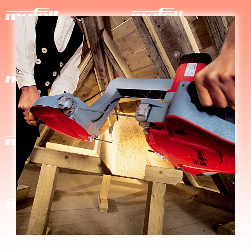 Zu "Handbandsäge" von Mafell Mafell Handbandsäge Z 5 Ec - CH Bestell- und Artikelnummer: 925320 Die Handbandsäge Z 5 Ec ist das innovative Nachfolgermodell der legendären Z 3. Sie bestecht dank des CUprex Hochleistungsmotors und der Magnesium-Druckguss-Bauteile durch geringeres Gewicht (13,7 kg), gesteigerte Leistung, ein noch höheres Drehmoment sowie durch exzellentes Handling. Mit kugelgelagerten Sägebandführungen für hervorragenden Bandlauf und somit für optimalen Schnitt. Maximal 8 mm-Sägebänder für optimale Flexibilität beim Schweifen und Profilieren von Pfetten und Sparren. Für große Materialstärken verfügt die kompakte Z 5 Ec über satte 305 mm Schnitttiefe. Die für MAFELL Handbandsägen typische Präzision sorgt auch bei der Z 5 Ec für ein ausgezeichnetes Schnittbild und perfekte Rechtwinkeligkeit der Schnitte. Die Kühlluft des Hochleistungsmotors wird zum Freiblasen der Anrisslinie genutzt. Das Resultat: Keine Späne in Kopfhöhe und immer klare Sicht auf den Anriss. Einsatzgebiet Längs- und Querschnitte Schweifen und Profilierungen Kervenschnitte und Ausblattungen Schifterschnitte und schräge Kerven (Zwei-Mann-Betrieb) Materialeinsatz z. B.: Vollholz und Leimbinder Vorteile Das rückenverzahnte Sägeband erleichtert das Zurückfahren im Holz - besonders einfach, wenn mit der mechanischen Bremse das Sägeband blockert wird. Die Feder-Vorspannung der unteren Führungsrolle sorgt für einen einfachen, schnellen Bandwechsel. Mit Spannungsabfall-Schalter gegen unkontrolliertes Wiedereinschalten nach einer Stromunterbrechung. Die einzigartige schwenkbare Sägebandführung ermöglicht winkelrechte Schnitte bis zu 90 mm Tiefe, ohne dass das zweite Sägeband das Material berührt, z. B. bei Ausblattungen. Technische Daten Schnitttiefe 305 mm 1 Bandseite schwenkbar 0 - 30 ° Nennleerlaufdrehzahl 650 - 1550 min⁻¹ Nennaufnahme 2250 W Universal-Motor 230 V / 50 Hz Gewicht 13.6 kg Standard-Ausrüstung Sägeband, 8 mm breit, 4 Zähne mit Rückenzahnung Sägeband, 8 mm breit, 4 Zähne per Zoll Sägeband, 6 mm breit, 4 Zähne per Zoll Handgriff für Zwei-Mann-Einsatz; Best. Nr. 203824 Parallelanschlag; Best. Nr. 039386 Anschlussleitung 11 m Geliefert im Karton Zubehör Verbrauchsmaterial Listenpreis CHF 6'491.40 Fuxpreis CHF 5'409.00 inklusive 8.1% MwSt Versand CHF 15.00 Kein Grauimport! Produkt bestellen 1 Stück 2 Stück 3 Stück 4 Stück 5 Stück 6 Stück 7 Stück 8 Stück 9 Stück 10 Stück Alle Angaben ohne Gewähr und solange Vorrat reicht!Wiederverkäufer werden? Produkt als PDF AKTION 5%