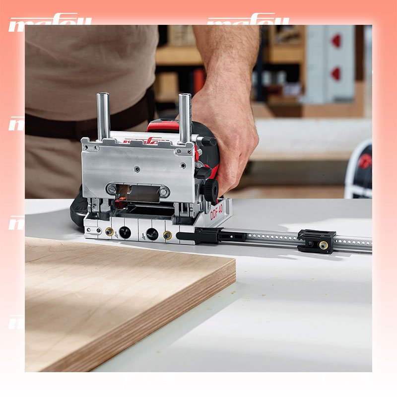 Zu "DuoDübler " von Mafell Mafell DuoDübler DDF 40 MaxiMAX im T-MAX - CH Bestell- und Artikelnummer: 918620 Mit dem DuoDübler DDF 40 wird das Setzen hochpräziser Dübellöcher noch einfacher und effizienter. Er steht für ein extrem breites Einsatzspektrum, leichtes Handling dank neuartiger Ergonomie sowie absolut formschlüssige, stabile Verbindungen. Ob Werkstatt oder Montage: Eine höhere Verbindungsqualität lässt sich mit einer handgeführten Maschine nicht erreichen. Ob Außenecke, Mittelwand oder Lochreihe: Der DDF 40 ermöglicht nicht nur die Präzision einer Stationärmaschine, sondern schafft das mit Standard-Rundholzdübeln auch besonders kostengünstig. Außerdem ist dank Doppellochtechnik schon bei der Montage eine extrem hohe Stabilität gewährleistet. Einsatzgebiet Lochreihen Bohren von Beschlägen Ideal geeignet für Korpusbau, Treppenbau, Werkstatt und Montage Materialeinsatz z. B.: Vollholz, Plattenwerkstoffe Verbindungen jeglicher Art von 3 - 12 mm Vorteile Die Höhe des Schwenkanschlags lässt sich per Drehrad und Skala maßgenau bis 62 mm in der Höhe einstellen. Gängige Maße können per Revolveranschlag voreingestellt werden. Mit den beiden federnden Anschlagstiften in der Grundplatte können Bohrungen im festen Abstand von 15,5 mm zur Werkstückkante gesetzt werden: wiederholbar sowie ohne Ausmessen und Anreißen. Das ergonomisch durchdachte Motorgehäuse mit Griffmulde vorne und Griffhöcker hinten ermöglicht bei jedem Einsatz eine ideale Griffposition und zugleich eine optimale Krafteinleitung. Der Schwenkanschlag wird beidseitig geführt und mit nur einer Einstellschraube zentral geklemmt. Für Gehrungsverbindungen lässt er sich stufenlos von 0 bis 90 Grad schwenken. Raststellungen bei 22,5°, 45° und 67,5° sind vorgegeben. Technische Daten Bohrtiefe 0 – 40 mm Bohrerabstand 32 mm Werkzeugaufnahme Ø 8 mm Werkzeug Ø max.12,2 mm Werkzeug Ø min.3 mm Schwenkbereich 0 - 90 ° Nennleerlaufdrehzahl 8000 min⁻¹ Nennaufnahme 900 W Absauganschluss Ø 29 mm Abmessungen (B x L x H) 145 x 300 x 164 mm Universal-Motor 230 V / 50 Hz Gewicht 2.8 kg Standard-Ausrüstung Zusatzauflage ZA Zusatzanschlag-Set ZAG Absaugstutzen Positionszeiger PAZ Anti-Rutschmatten (265 x 175 mm); Best. Nr. 095063 Leimflasche 250 ml (ohne Inhalt); Best. Nr. 095059 Sechskantschlüssel mit Griff; Best. Nr. 093282 Anschlussleitung 5 m Dübelbohrer-HW 8 mm Dübelbohrer-HW 6 mm VE Rundholzdübel 8 x 30 mm, 200 Stück VE Rundholzdübel 6 x 30 mm, 350 Stück Leimdüse Ø 8 mm; Best. Nr. 095060 Seitenanschlag-Set SA 320; Best. Nr. 206490 Leistenanschlag LA; Best. Nr. 206491 Geliefert im Koffer Zubehör Verbrauchsmaterial Listenpreis CHF 1'259.40 Fuxpreis CHF 1'022.00 inklusive 8.1% MwSt Versand CHF 15.00 Kein Grauimport! Produkt bestellen 1 Stück 2 Stück 3 Stück 4 Stück 5 Stück 6 Stück 7 Stück 8 Stück 9 Stück 10 Stück Alle Angaben ohne Gewähr und solange Vorrat reicht!Wiederverkäufer werden? Produkt als PDF AKTION 5%