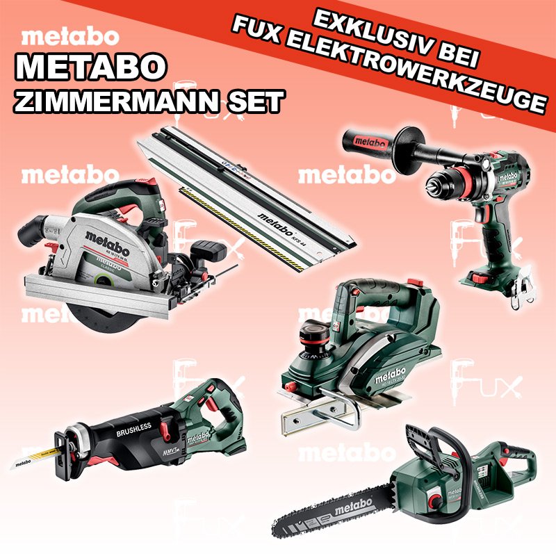 Heute auf dieses Produkt 27% Rabatt! Zu "Zimmermann Set" von Metabo FULL Service: 36 Monate zum Nulltarif für Sie! Weitere Infos zum FULL Service Dieses Produkt ist CAS kompatibel! Weitere Infos zu CAS Black Fuxday Aktionen FUX SPECIAL EXKLUSIV BEI FUX Metabo Zimmermann SET 4 SOLO Bestell- und Artikelnummer: Zimmermann SET 4 SOLO BS 18 LTX BL Q I Akku-BohrschrauberAkkuspannung 18 V Drehzahl 0-550 / 0-2000 U/min Drehmoment hart / weich 130 / 65 Nm Gewicht (mit Akkupack) 2.3 kgInfos MS 36-18 LTX BL 40 Akku KettensägeAkkuspannung 18 V Schnittlänge 36 cm Max. Kettengeschwindigkeit 22 m/s Gewicht mit Akkupack 4,6 kgInfos SSEP 18 LTX BL MVT Akku-SäbelsägeAkkuspannung 18 V Hubzahl bei Leerlauf 0 - 3.000 /min Gewicht (mit Akkupack) 4.6 kgInfos HO 18 LTX 20-82 Akku-Einhand-HobelAkkuspannung 18 V Hobelbreite 82 mm Spanabnahme einstellbar 0-2 mm Gewicht 3.5 KgInfos KS 18 LTX 66 BL Akku HandkreissägeAkkuspannung 18 V Schnitt-Tiefe bei 90° 0-66 mm Sägeblatt 165 mm Gewicht 4.5 kgInfos Kappschiene KFS 44Gesamtlänge 834 mm Schnittlänge 440 mmInfos Ergattere dir einen Akku bei der Registration auf metabo.ch Alle Produkte dieser Aktion anzeigen OHNE AKKUS UND LADEGERÄT Standard-Ausrüstung In diesem Set enthalten: BS 18 LTX BL Q I Akku-Bohrschrauber MS 36-18 LTX BL 40 Akku Kettensäge SSEP 18 LTX BL MVT Akku-Säbelsäge HO 18 LTX 20-82 Akku-Einhand-Hobel KS 18 LTX 66 BL Akku Handkreissäge Kappschiene KFS 44 Listenpreis CHF 2'073.50 Fuxpreis CHF 1'499.00 inkl. 8.1% MwSt, inkl vRG Versand CHF 25.00 Kein Grauimport! Produkt bestellen 1 Stück 2 Stück 3 Stück 4 Stück 5 Stück 6 Stück 7 Stück 8 Stück 9 Stück 10 Stück Alle Angaben ohne Gewähr und solange Vorrat reicht!Wiederverkäufer werden? Produkt als PDF NEUHEITAKTION 27%