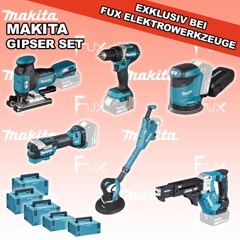 Zu "Gipser Set" von Makita FUX SPECIAL EXKLUSIV BEI FUX Makita Gipser Set 1 SOLO Bestell- und Artikelnummer: maGipser Set 1 SOLO DDF484ZJ Akku-BohrschrauberAkkuspannung 18 V Drehzahlen 0-500 / 0-2000 U/min Drehmoment hart / weich 54 / 30 Nm Gewicht 1.5 kgInfos DFR552Z Akku-MagazinschrauberAkkuspannung 18 V Drehzahl 0 - 4500 min⁻¹ Schnellbauschrauben 25 - 55 mm Gewicht inkl. Akku 1.9 - 2.2 kg kgInfos DSL801ZU Akku-LanghalsschleiferAkkuspannung 18 V Papierdurchmesser 225 mm Verstellbares Teleskoprohr mit 420 mm Spielraum Gewicht 5.8 kgInfos DBO180ZJ Akku-ExzenterschleiferAkkuspannung 18 V Exzenterhub 2,8 mm Schleifteller (Ø) 125 mm Gewicht 3.6 kgInfos DTM52Z Multifunktions WerkzeugAkkuspannung 18 V Schwingungen 10000 - 20000 min-1 Werkzeugaufnahme Starlock Max System Gewicht inkl. Akku 2.0 kg Infos DJV18ZJ Akku-StichsägeAkkuspannung 18 V Hubzahl 800 - 3500/ min Schnittleistung Holz 135 mm / Stahl 10 mm Gewicht 2.5 kgInfos 2 x MAKPAC Gr. 3Produktabmessung (L x B x H) 377 x 277 x 176 mm Infos Einsatz für DFR551 Einsatz für DFR551 Makpac Koffer Typ C (821551-8)Infos Einsatz für DTM52 Einsatz für DTM52 Makpac Koffer Typ C (821551-8) Infos OHNE AKKUS UND LADEGERÄT Standard-Ausrüstung In diesem Set enthalten: DDF484ZJ Akku-Bohrschrauber DFR552Z Akku-Magazinschrauber DSL801ZU Akku-Langhalsschleifer DBO180ZJ Akku-Exzenterschleifer DTM52Z Multifunktions Werkzeug DJV18ZJ Akku-Stichsäge 2 x MAKPAC Gr. 3 Einsatz für DFR551 Einsatz für DTM52 Geliefert im Koffer Zubehör Listenpreis CHF 2'262.00 Fuxpreis CHF 1'538.00 inklusive 8.1% MwSt Versand CHF 20.00 Kein Grauimport! Produkt bestellen 1 Stück 2 Stück 3 Stück 4 Stück 5 Stück 6 Stück 7 Stück 8 Stück 9 Stück 10 Stück Option: Makita BL 1860 B ( Li-lon Akku ) für CHF 95.- statt CHF 124.-Infos Alle Angaben ohne Gewähr und solange Vorrat reicht!Wiederverkäufer werden? Produkt als PDF NEUHEITAKTION 32%