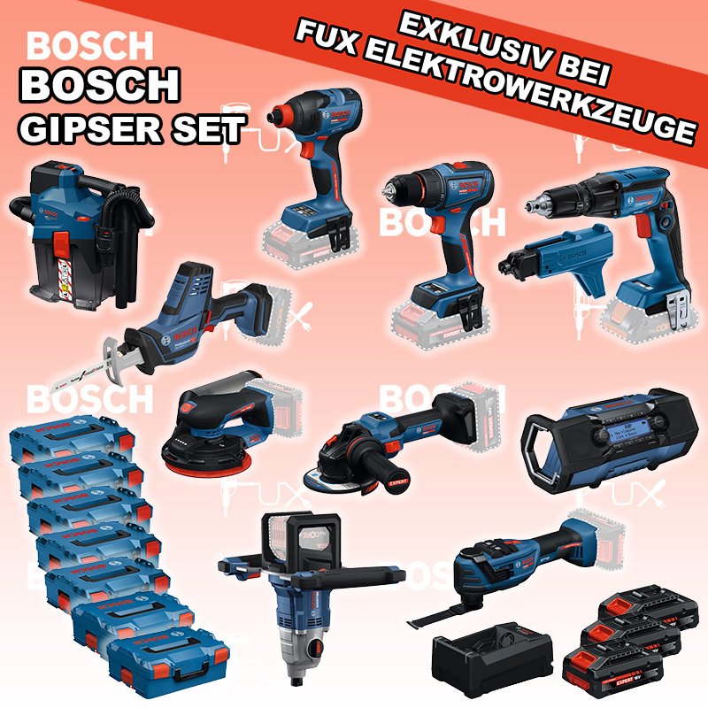 Zu "Gipser Set" von Bosch Professional FUX SPECIAL EXKLUSIV BEI FUX Bosch Expert EXGipser Set 1 Bestell- und Artikelnummer: EXGipser Set 1 5 Jahre Garantie auf Bosch Expert Maschinen / Zubehör EXSR18V-90 Akku-BohrschrauberAkkuspannung 18 V Drehmoment 36 / 65 Nm Leerlaufdrehzahl 0 – 630 / 0 – 2100 min⁻¹ Gewicht exkl. Akku 1.1 kgInfos GTB 18V-45 Akku-TrockenbauschrauberAkkuspannung 18 V Leerlaufdrehzahl 0 - 4500 min⁻¹ Drehmoment hart / weich 32 / 6 Nm Gewicht inkl. 1.5 kgInfos GRW 18V-160 Akku-RührwerkAkkuspannung 18 V Leerlaufdrehzahl 720 min⁻¹ Werkzeugaufnahme M14 Gewicht 4.8 kgInfos EXDX18V-210 Akku-DrehschlagschrauberAkkuspannung 18 V Drehmoment. max. 210 Nm Leerlaufdrehzahl 0 - 1100 / 0 - 1700 / 0 - 2300 min⁻¹ Schlagzahl 0 - 4000 bpm Gewicht exkl. Akku 1.2 kgInfos GAS18V-6LS Akku-StaubsaugerAkkuspannung 18 V Behältervolumen netto 4.5 l Staubklasse L Gewicht exkl. Akku 4 kgInfos EXWS18V-15S Akku-WinkelschleiferAkkuspannung 18 V Leerlaufdrehzahl 11000 min⁻¹ Scheiben-Ø 125 mm Gewicht exkl. Akku 2.2 kgInfos GPB18V-3SC Akku-RadioAkkuspannung 18 V oder USB-C Wiedergabe über DAB+, Bluetooth®, FM Nennleistung je Mitteltöner 10 W Gewicht exkl. Akku 2.1 kgInfos GSA 18 V-LI C Akku-SäbelsägeAkkuspannung 18 V Hubzahl 0-3050 min-1 Hublängen 21 mm Gewicht 2.5 kgInfos EXOP18V-40 Akku-Multi-CutterAkkuspannung 18 V Leerlaufschwingzahl 10000 – 20000 min⁻¹ Oszillationswinkel links und rechts 2 ° Gewicht exkl. Akku 1.24 kgInfos EXEX18V-150-5 Akku-ExzenterschleiferAkkuspannung 18 V Schleifteller-Ø 150 mm Leerlaufdrehzahl 5000 – 10000 Umin Schwingzahl 10000 – 20000 min⁻¹ Gewicht exkl. Akku 1.2 kgInfos GMA 55 Magazinaufsatz für TrockenbauschrauberSchraubenlänge 25 - 55 mm Schrauben-Ø, max. 5.0 mm Gewicht 0.36 kgInfos 3x EXBA18V-40 + GAL 12V/18V-80 Starter-Set3 x EXBA18V-40 Akkupack GAL 12V/18V-80 LadegerätInfos Standard-Ausrüstung In diesem Set enthalten: EXSR18V-90 Akku-Bohrschrauber GTB 18V-45 Akku-Trockenbauschrauber GRW 18V-160 Akku-Rührwerk EXDX18V-210 Akku-Drehschlagschrauber GAS18V-6LS Akku-Staubsauger EXWS18V-15S Akku-Winkelschleifer GPB18V-3SC Akku-Radio GSA 18 V-LI C Akku-Säbelsäge EXOP18V-40 Akku-Multi-Cutter EXEX18V-150-5 Akku-Exzenterschleifer GMA 55 Magazinaufsatz für Trockenbauschrauber 3x EXBA18V-40 + GAL 12V/18V-80 Starter-Set Geliefert im Koffer Zubehör Listenpreis CHF 3'438.60 Fuxpreis CHF 2'645.00 inklusive 8.1% MwSt Kostenloser Versand Kein Grauimport! Produkt bestellen 1 Stück 2 Stück 3 Stück 4 Stück 5 Stück 6 Stück 7 Stück 8 Stück 9 Stück 10 Stück Alle Angaben ohne Gewähr und solange Vorrat reicht! Produkt als PDF NEUHEITAKTION 23%