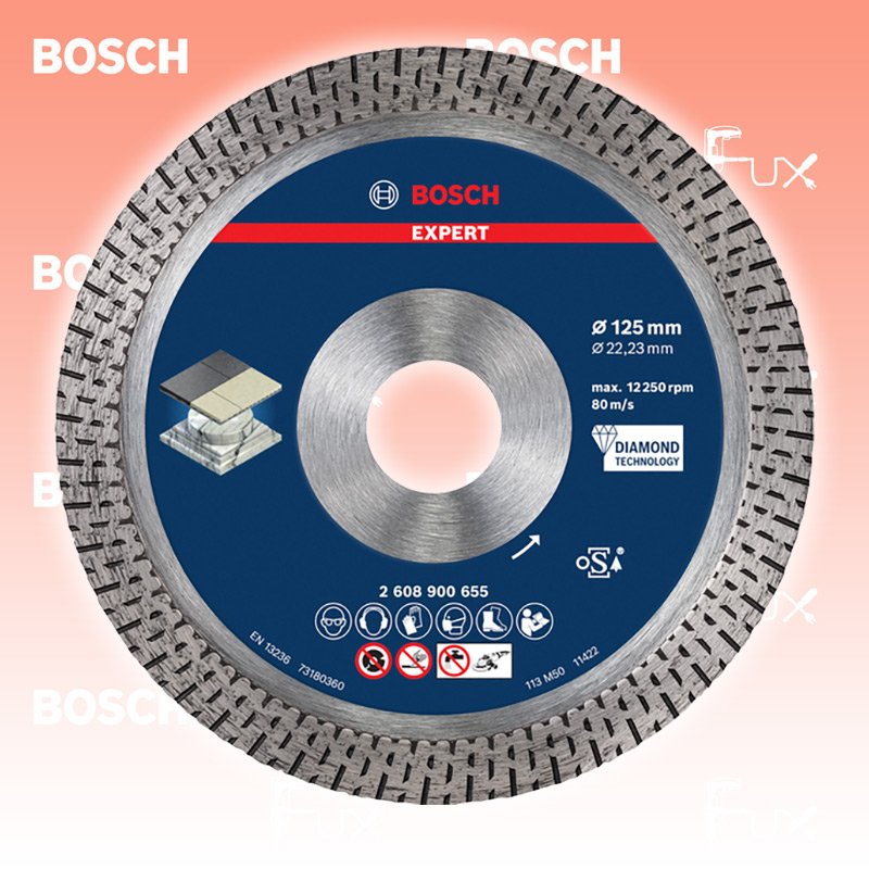 Zu "Diamanttrennscheibe" von Bosch Professional Bosch Expert Hard Ceramic Diamanttrennscheibe 125 mm Bestell- und Artikelnummer: 2608900655 Bis zu 2-mal präziser als eine Bosch 2607019473 Ceramic Diamanttrennscheibe Saubere, hochwertige Schnitte mit Bosch Diamond Technology Hochpräzises Schneiden von Hartkeramikfliesen Spanfreies Schneiden mit einem speziell entwickelten durchgehenden Rand Dünne Blätter trennen effizienter und bleiben dadurch kühl Die verstärkte Mitte reduziert Vibrationen für einen saubereren Schnitt geeignet für: Harte Fliesen Harter Stein Technische Daten Durchmesser x Bohrung 125 x 22.23 mm Schnittbreite 1.4 mm Standard-Ausrüstung Verkaufseinheit 1 Stk. Listenpreis CHF 56.90 Fuxpreis CHF 46.00 inklusive 8.1% MwSt Versand CHF 15.00 Kein Grauimport! Produkt bestellen Verkaufseinheit 1 Stk. 1 Stück 2 Stück 3 Stück 4 Stück 5 Stück 6 Stück 7 Stück 8 Stück 9 Stück 10 Stück 11 Stück 12 Stück 13 Stück 14 Stück 15 Stück 16 Stück 17 Stück 18 Stück 19 Stück 20 Stück 21 Stück 22 Stück 23 Stück 24 Stück 25 Stück 26 Stück 27 Stück 28 Stück 29 Stück 30 Stück 31 Stück 32 Stück 33 Stück 34 Stück 35 Stück 36 Stück 37 Stück 38 Stück 39 Stück 40 Stück 41 Stück 42 Stück 43 Stück 44 Stück 45 Stück 46 Stück 47 Stück 48 Stück 49 Stück 50 Stück Alle Angaben ohne Gewähr und solange Vorrat reicht! Produkt als PDF 20%